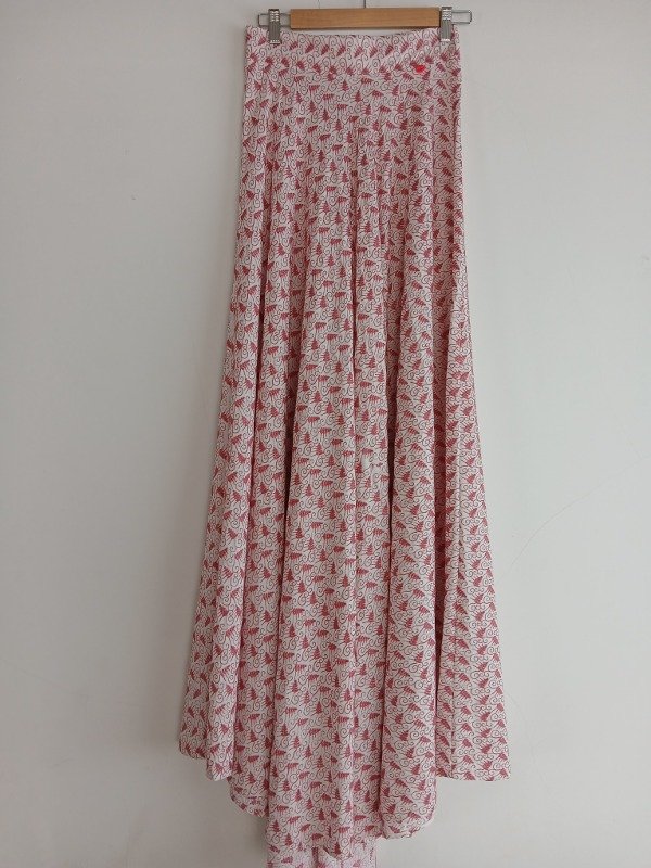 Maxifalda de largo a los tobillos con cola en la parte trasera.